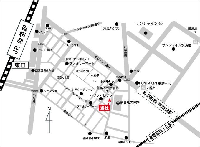 | ■ | 東京メトロ有楽町線「東池袋駅」 | ・・・・ | 徒歩約7分 |