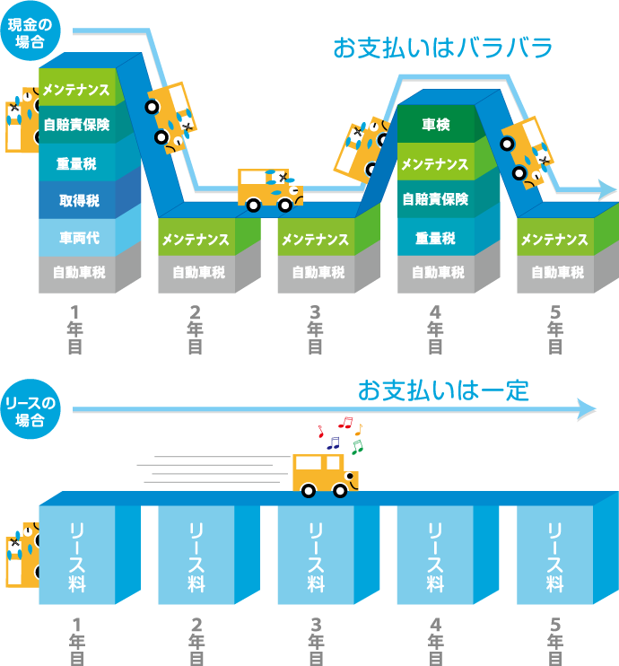 車両の調達から支払い、各種税金の支払い、メンテナンス管理等の複雑な管理業務が大幅に簡素化されます。
